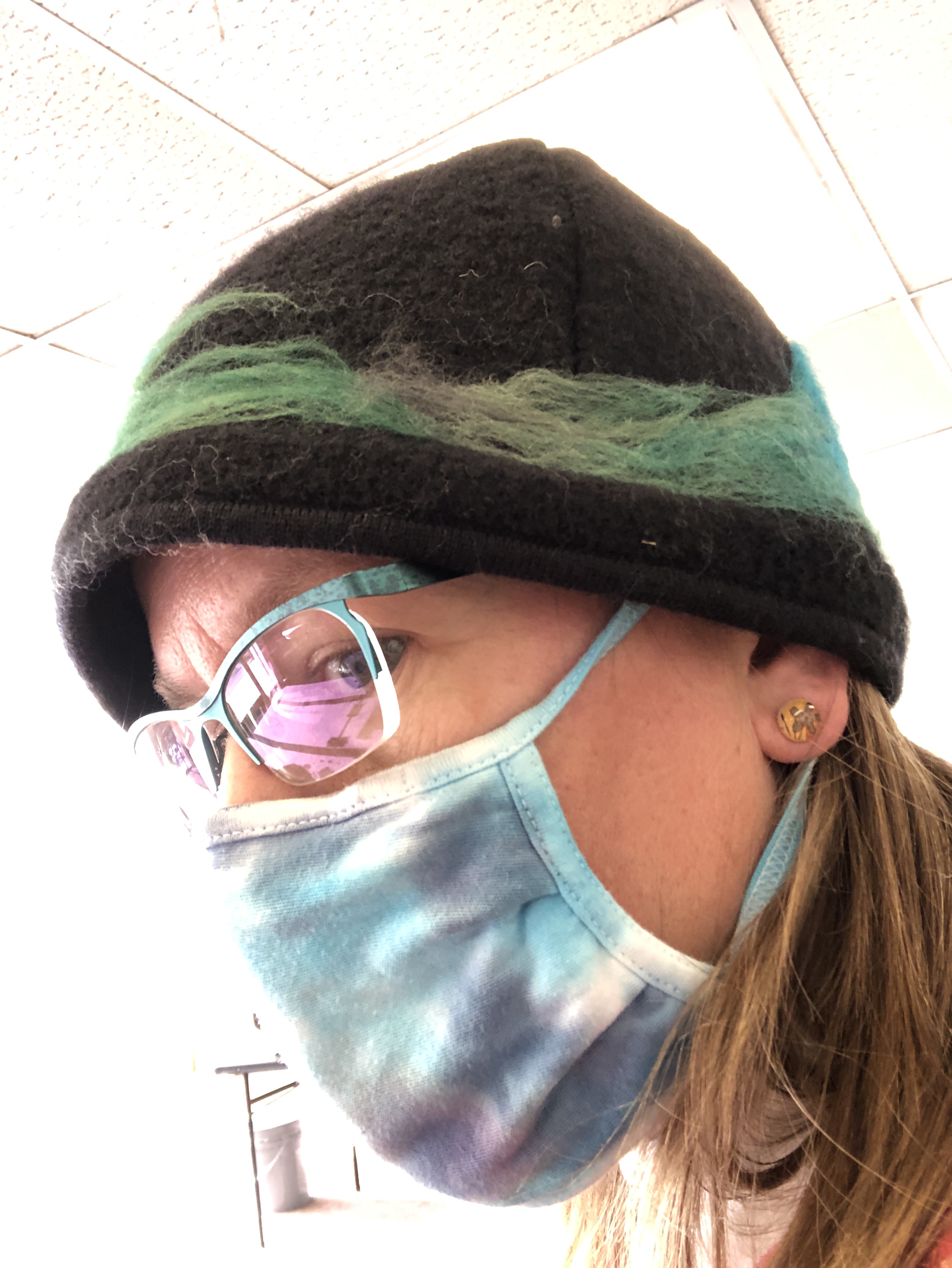 She was entranced by the needle felted paintings. And then the quintessential question was asked – can you make me a hat out of that?
